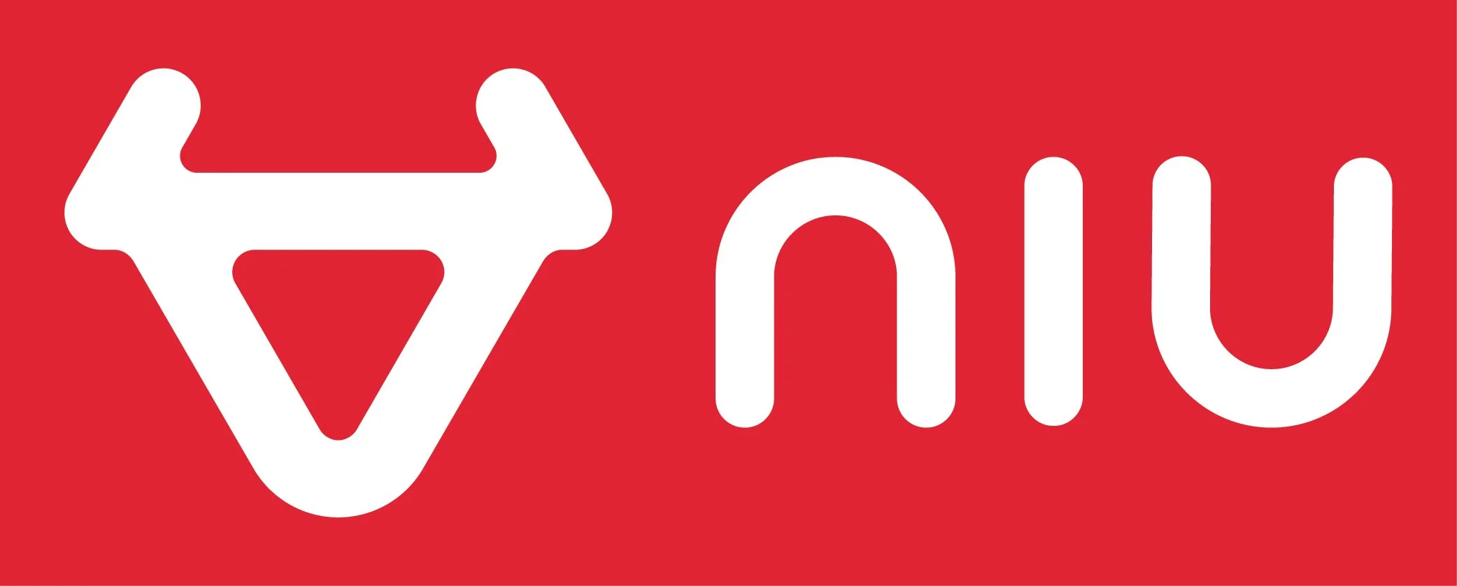 NIU logo with stylized symbol on a red background