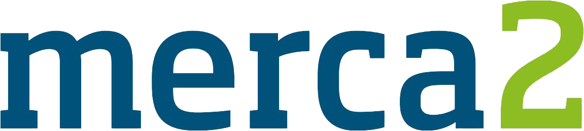 Logo with the word 'merca' in blue and number '2' in green.
