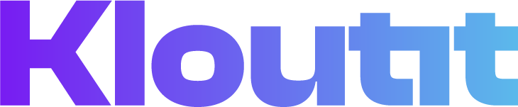 Logo with the text 'Kloutit' in a gradient of purple to blue.